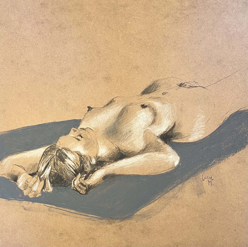 Lors de ses études en stylisme de mode, Lucie a pu bénéficier de cours de modèle vivant. Une première approche très théorique du corps humain qui lui a permis de comprendre et de mieux appréhender l’anatomie.